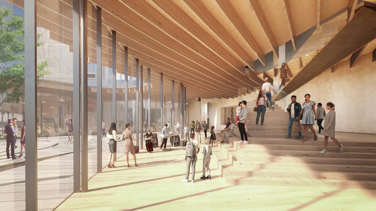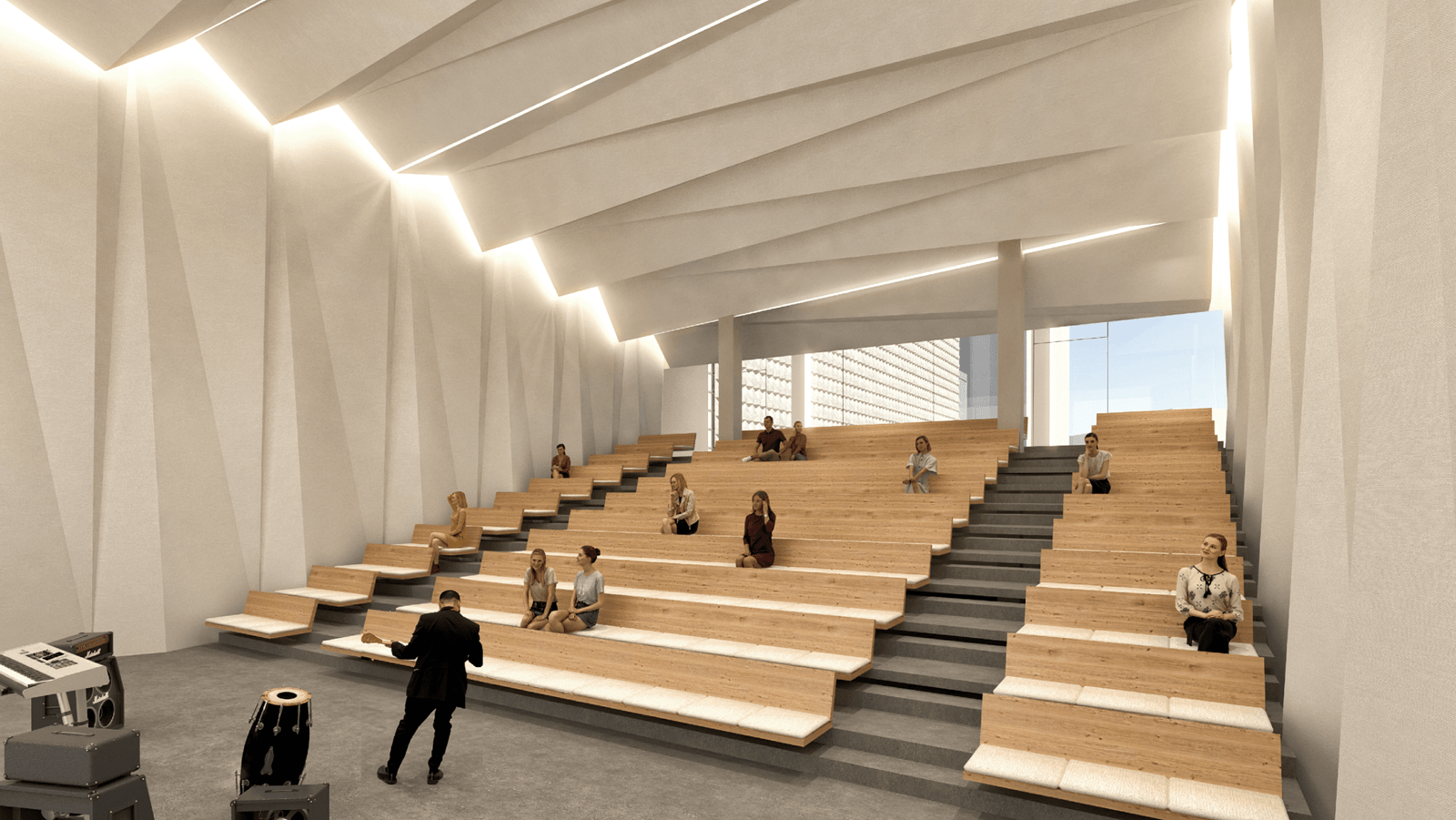 As the defining feature of the new venue, the roof is designed to foster encounter and exchange. In addition to serving as a spatial connector, the canopy accommodates a temporary exhibition space, extending the cultural program beyond performance and reinforcing the building’s role as an everyday civic destination.