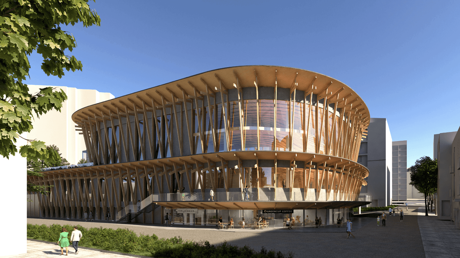 The project preserves and refurbishes the original structures while introducing a new architectural layer: a lightweight canopy that weaves together the existing volumes and establishes a continuous public realm. This canopy acts as both connector and mediator, linking the main auditorium, restaurant, gallery, and ancillary spaces while creating a new sequence of indoor and outdoor public spaces. Conceived as a unifying element, it contrasts with the clarity and rationality of the modernist forms, introducing a softer and more social architectural gesture.