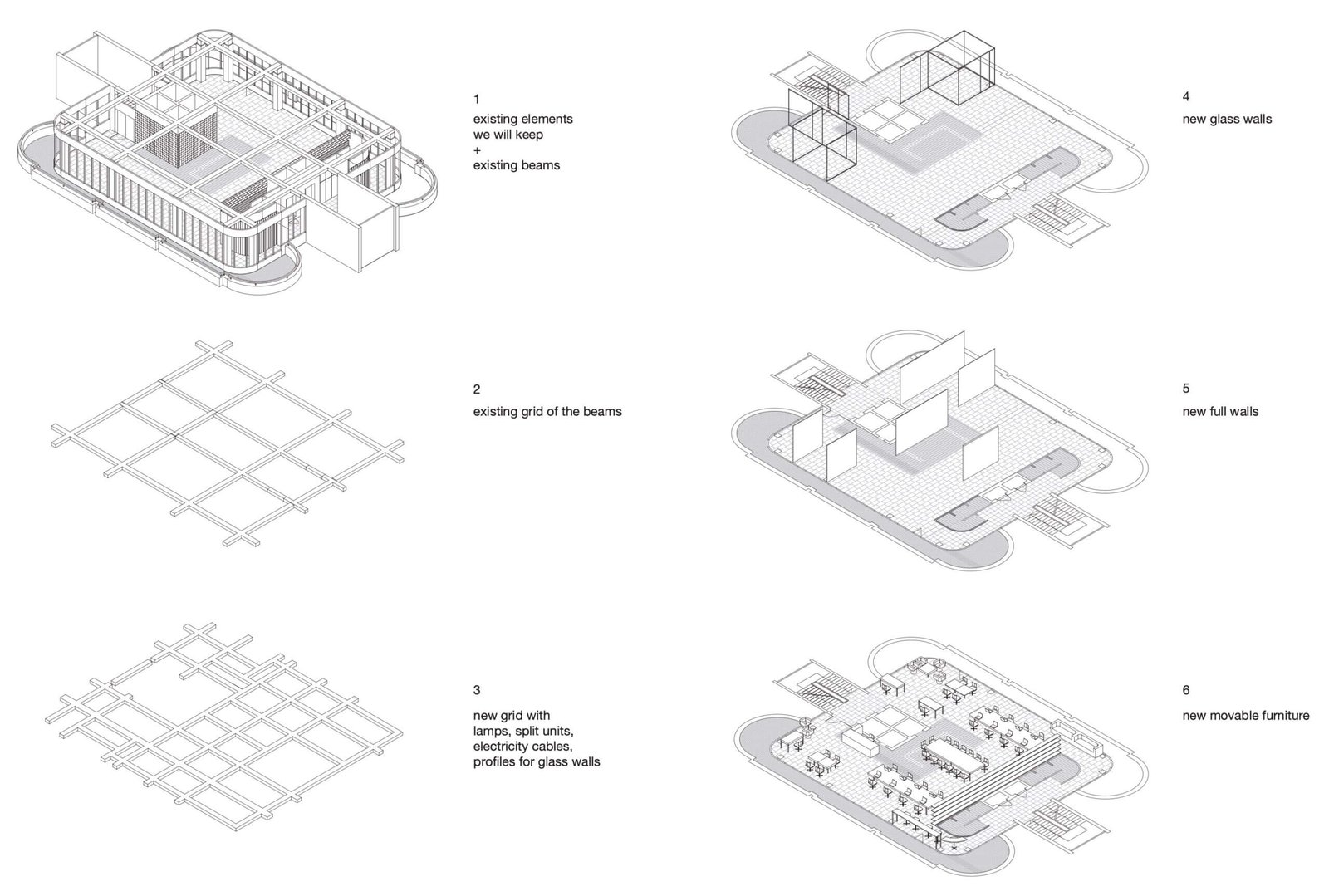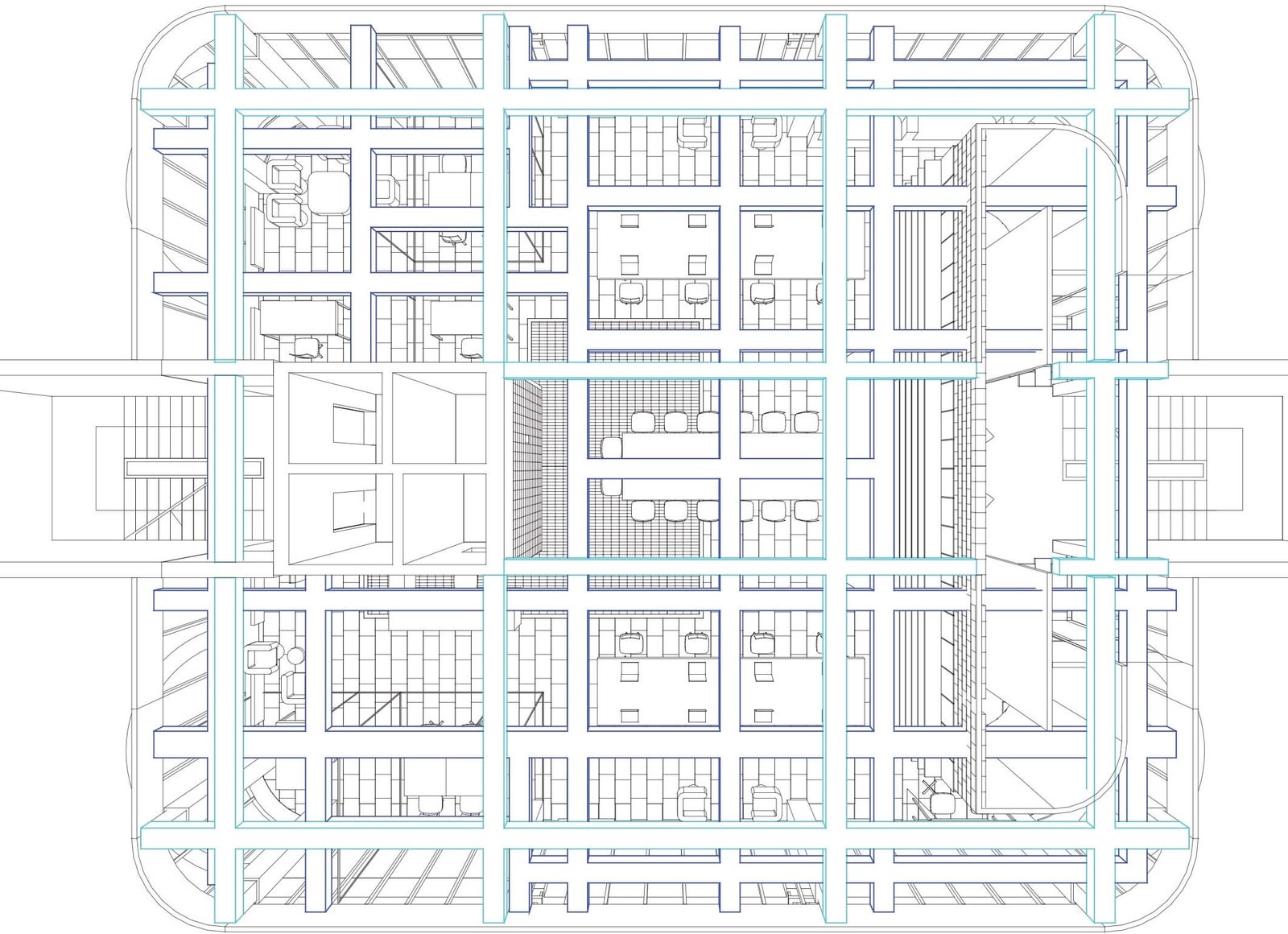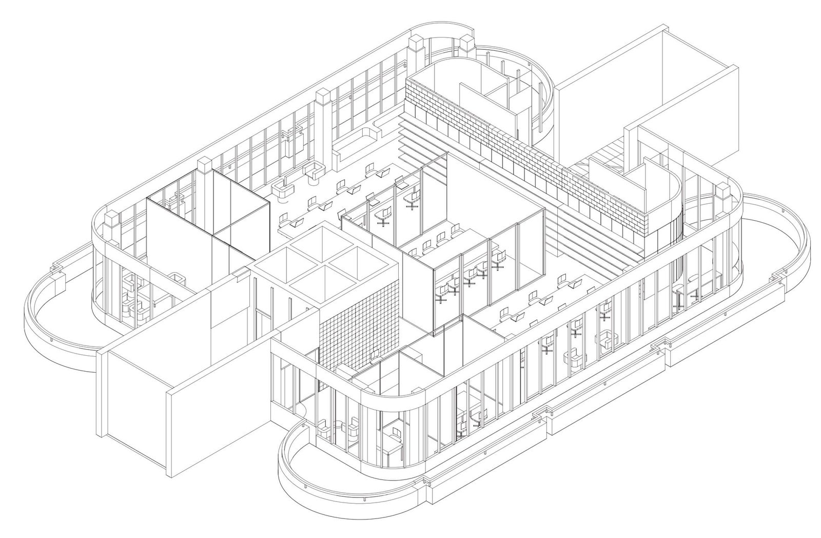 The resulting workspace balances formality with openness, offering a calm and durable environment suited to long-term institutional use. Through minimal intervention and precise material choices, the project demonstrates how adaptive reuse can reinforce the architectural value of modernist heritage while meeting present-day programmatic needs.